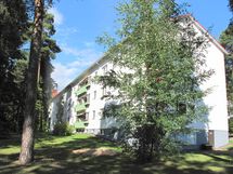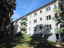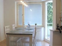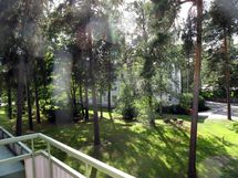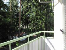 - Tilava parveke vehrein näkymin taloyhtiön viihtyisälle piha-alueelle.