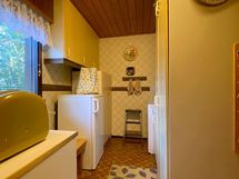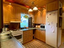 - Keittiötilassa kaapistot, sähköliesi, liesituuletin, täyskorkea jääkaappi.