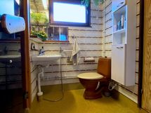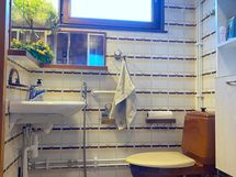 - Pesutilojen kuvaus: Kylpyhuoneessa suihku, suihkuseinä, wc-istuin, pesuallas, peili, bideesuihku, seinäkaapit ja -hyllyt, ikkuna. Erillisen WC:n kuvaus: Alakerran wc kph:n yhteydessä, yläkerran wc-tilassa wc-istuin, pesuallas, allastaso- ja kaapistot, peili valolipalla.