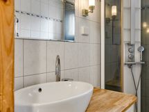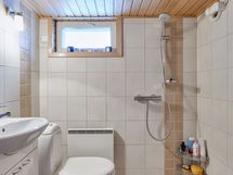 - Pesutilojen kuvaus: Yläkerran kylpyhuone 2007: suihkukaappi, WC-istuin, pesuallas, allaskaappi, peili. Koneellinen poisto, lattialämmitys.