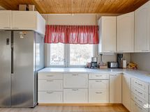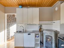 - Työtason materiaali: Laminaatti. Side-by-side jääkaappipakastin 2018, keraaminen liesi ja uuni 2022, astianpesukone 2021, puuhella.
