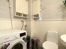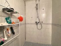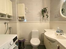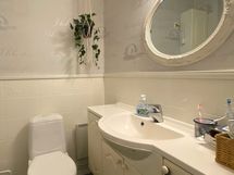- Pesutilojen kuvaus: Laatoitetussa kylpyhuoneessa suihku ja lattialämmitys sähköllä-. Erillisen WC:n kuvaus: Tilavassa wc-tilassa wc-istuin, pesuallas+allaskaapisto, seinäkaapistot, peili, pk-liitäntä.