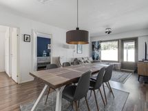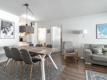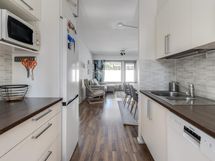 - Jääkaappipakastin, keraaminen liesi, liesituuletin, astianpesukone, kaapistot, kiinteät valaisimet.