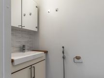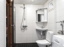 - Sauna, sähkökiuas, kylpyhuone, erillinen wc, suihku, suihkuseinä, peilit, peilikaappi, pesukoneliitäntä, lattialämmitys Kylpyhuoneessa ja ja WC:ssä, kiinteät valaisimet.