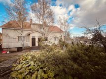 Viehättävällä Kotkan Metsolan puutaloalueella maalämpö-puuomakotitalo ja piharakennus takkatuvalla sekä autotalleilla, iso piha - remontoi ja/tai ennallista mieluiseksesi kodiksi