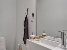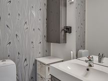 - Pesutilojen varusteet: Suihku, suihkuseinä, pesukoneliitäntä, pyyhepatteri, kaapit ja lattialämmitys (sähkö). Erillisten WC:n lukumäärä: 2. Erillisen WC:n varusteet: WC-istuin, allaskaappi, pesuallas, peili ja toisessa wc:ssä bidee-käsisuihku.