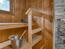 - Kiuas: Sähkökiuas. Saunassa valmius puulämmitteiselle kiukaalle.