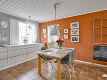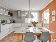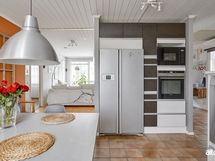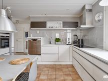- Keittiön varusteet: Jääkaappipakastin (side by side), erillisuuni (Siemens), mikroaaltouuni, liesi (Siemens, 80 cm erikoisleveä) ja astianpesukone (Bosch). Liesi: Induktioliesi. Työtason materiaali: Kvartsikomposiitti.