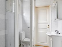 - Pesutilojen varusteet: WC-istuin, suihku, suihkuseinä, lattialämmitys, peilikaappi, pesuallas, bidee-suihku ja allaskaappi.