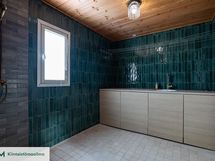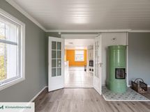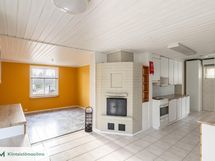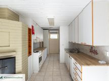 - Sähköliesi, astianpesukone, kaapistot, liesituuletin, varaava takka, tällä hetkellä ei kylmäkalusteita.
