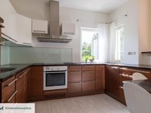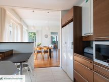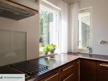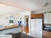 Jääkaappi, pakastin, astianpesukone ergonomisesti integroitu (2023), mikroaaltouuni, induktioliesi ja erillisuuni, liesituuletin hormiin, Parma-keittiö