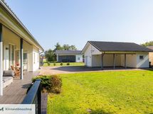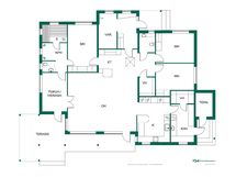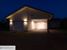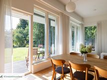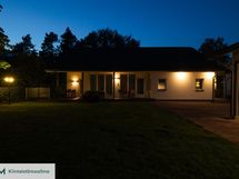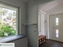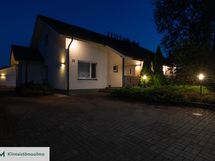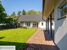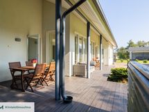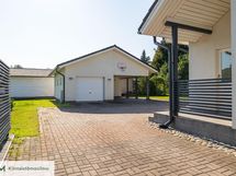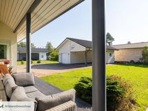 Laadukkain materiaalein toteutetun talon sydämenä toimii valtava olohuone, jonka huonekorkeus ja korkeista ikkunoista sisään tulviva valo antavat kodille ylellistä avaruutta. Sekä olo- että vierashuoneesta pääsee suurelle terassille, suojaisa piha avautuu etelään. Arkea helpottamaan sisäänkäynnin yhteyteen on sijoitettu kuraeteinen ja tavallista enemmän säilytystilaa. Varastotila ei tässä kodissa lopu kesken, täältä löytyy mm. säilytysullakko.
