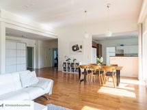 Olohuoneen kaapisto, kiinteät valaisimet, verhokiskot, sälekaihtimet, naulakko, keskuspölynimuri valmius, hälytys-/valvontajärjestelmä