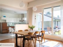 Tämä ihastuttava koti on arkkitehti Marjut Lindqvistin piirtämä asukkaiden toiveiden pohjalta. Kodin myyntivalttina on selkeä pohjaratkaisu yhdessä tasossa, helppohoitoinen piha ja autotalli sekä autokatos. Kaukolämmössä olevaa Siporex-taloa on vaalittu rakkaudella ja huollettu säännöllisesti.