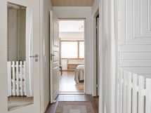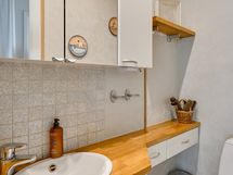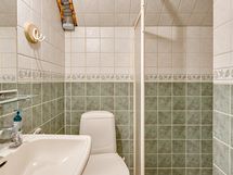 - Pesutilojen varusteet: Suihku, pesukoneliitäntä, lattialämmitys (Vesikiertoinen) ja kaapistot. Erillisten WC:n lukumäärä: 2. Erillisen WC:n kuvaus: WC-istuin, allas- ja peilikaappi, bidee-suihku, vesikiertoinen lattialämmitys. Lattia laatta, seinät tapetti. Yläkerran kylpyhuone: suihku, wc-istuin, allaskaappi, peili, bidee-suihku, vesikiertoinen lattialämmitys. Lattia ja seinät laatta.