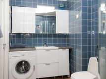 - Pesutilojen varusteet: WC-istuin, suihkuseinä (Liikkuvilla ovilla, asennettu v.2014), pesuallas, allaskaappi, pesukone (sekä tilaa pesukoneelle, pesukone v.2014.), peilikaappi, kodinhoitopöytä ja pesukoneliitäntä. Pesutilojen kuvaus: Märkätilatarkastus 16.6.2025.
