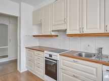 - Keittiön varusteet: Liesi, liesituuletin ja astianpesukone. Työtason materiaali: Laminaatti. Remontoitu n 2005.