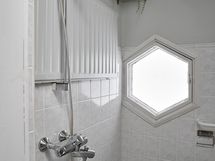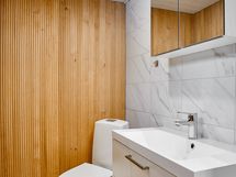 - Pesutilojen kuvaus: Kellarikerroksen KPH: Peilikaappi, pesuallas, allaskaappi, bideesuihku, wc-istuin, suihku, ikkuna*2, vesikiertoinen lattialämmitys. Lattia laatta, seinät kaakeli ja tervaleppäsormipaneeli.