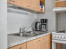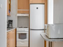 - Keittiön varusteet: Jääkaappipakastin, uuni ja liesituuletin. Liesi: Valurautaliesi. Työtason materiaali: Laminaatti.