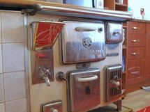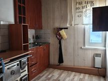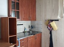 Jääpakastinkaappi, puuliesi, keraaminen keittotaso, kaapistot.