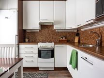 - Jääkaappi/pakastin, sähköliesi, astianpesukone, astianpesukoneliitäntä, liesituuletin hormiin, kaapistot