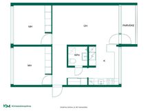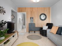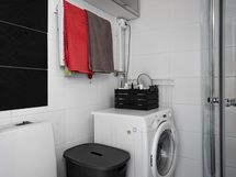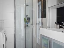 - Kylpyhuone, suihku, suihkuseinät, peilikaappi, pesukoneliitäntä, lattialämmitys, kylpyhuonekaapisto, kiinteät valaisimet
