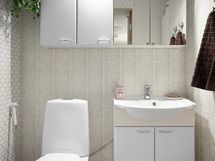 - KYLPYHUONE: suihku, suihkuseinä, pesukoneliitäntä, vesikiertoinen lattialämmitys, poistoilmapuhallin, kiinteät valaisimet. SAUNA: sähkökiuas, kiinteät valaisimet. ERILLINEN WC: peilikaappi, kylpyhuonekaapisto, kiinteät valaisimet. kylpyhuone ja wc-tila remontoitu v. 2005.