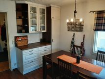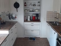 - Tilaa isolle ruokapöydälle, Paljon kaappitilaa, Paljon työskentelytilaa, Laminaattitasot, Astianpesukone, Sähköliesi, Jääkaappi, Pakastin