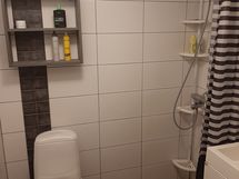 - Useita suihkuja, Pesukone, Kuivausrumpu, Laattalattia, Laattaseinä, Peilikaappi