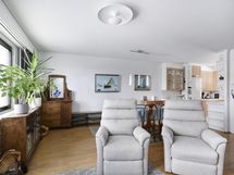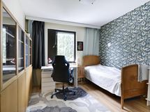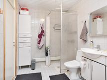 - Sauna, sähkökiuas, kylpyhuone, erillinen wc, suihku, suihkuseinä, peilit, kaapit, allaskaappi, pesukoneliitäntä, kiinteät valaisimet.