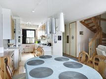 - Jääkaappipakastin, sähköliesi, liesituuletin, astianpesukone, kaapistot, kiinteät valaisimet.