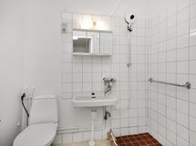 - Kylpyhuone, suihku, peilikaappi, pesukoneliitäntä, kiinteät valaisimet.