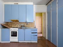 - Jääkaappi, sähköliesi, liesituuletin hormiin, pöytätasojen materiaali laminaatti, kaapistot alkuperäiset, pyykinpesukoneliitäntä
