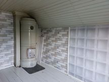 Lattia: Olohuoneessa: laminaatti. Makuuhuoneessa: lauta. Seinät: Keittiössä: puu. Olohuoneessa: tapetti. Makuuhuoneessa: tapetti.