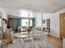 Muuttovalmis rivitalokoti: tilava olohuone tupakeittiöllä, mukavan kokoiset makuuhuoneet, paljon kaappitilaa ja erillinen WC. Huoneisto on yhdessä tasossa, autotalli ja kaksi ulkovarastoa talon välittömässä yhteydessä. Käyttövesi-, lämmönjakohuoneremontti sekä julkisivun korjaus v. 2019-2020 sekä ikkunat ja ovet sekä huoneiston lukitus uusittu v. 2024. Etupihalla viihtyisä terassi, lisäksi pieni takapiha. Kaikki palvelut lähellä, rauhallisella ja viihtyisällä alueella.