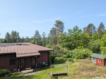 Osittain lähimetsään rajoittuvalla rinnetontilla on puutarhakasvillisuutta, vanha leikkimökki, talousrakennus sekä koira-aitaus.