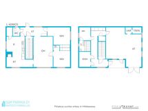 Kaksikerroksisessa asuinkerroksessa on avara ja valoisa iso olohuone, kaksi tilavaa makuuhuonetta, joissa toisessa on vesipiste. Asuinkerroksen takkahuone on avointa tilaa keittiön kanssa. Alakerrassa sijaitsee pesutilat, sauna, kodinhoitohuone, runsaasti erillistä säilytystilaa sekä iso lämmin vesipisteellinen autotalli, johon mahtuu tarpeiden mukaan kuntosalia tai muuta harrastetilaa. Molemmissa kerroksissa ilmalämpöpumppu.
