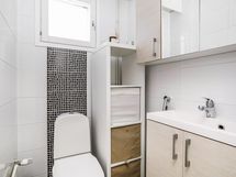 - Sauna, sähkökiuas v. 2024, kylpyhuone, erillinen wc, suihku, peilikaappi, kaapit, allaskaappi, pesukoneliitäntä, lattialämmitys sähköinen, kylpyhuoneessa, kiinteät valaisimet, vesikiertoinen pyyhekuivain. Erillinen wc-tila uusittu v. 2010. Sauna ja kylpyhuone uusittu v. 2010 (asianmukainen vesieristys).