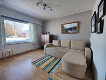 Pientalossa asuintiloina olohuone, keittiö, makuuhuone, kph/wc ja iso autokatos.