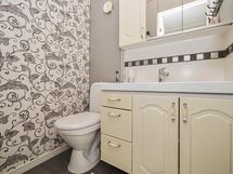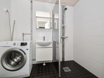 - Sauna, sähkökiuas, kylpyhuone, erillinen wc, peilit, peilikaappi, kaapit, allaskaappi, pesukoneliitäntä, lattialämmitys kylpyhuoneessa, kiinteät valaisimet. Saunaosasto remontoitu 2014