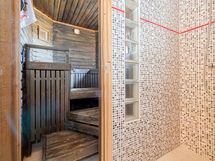 - Sauna 2 kpl, sähkökiuas, puukiuas, kylpyhuone, erillinen wc 2 kpl, suihku, peilit, kaapit, allaskaappi, pesukoneliitäntä, lattialämmitys, kiinteät valaisimet.