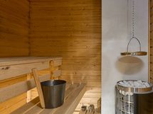 - Sähkökiuas. Katto, seinät, lauteet paneeli. Laattalattia.