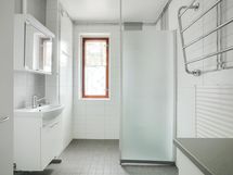 Kylpyhuone, erillinen wc, suihku, lattialämmitys.