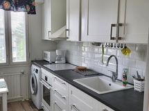 - Jääkaappi/pakastin, erillisuuni (kiertoilmauuni) ja keraaminen liesitaso, liesituuletin/ aktiivihiilisuodatin, astianpesukoneliitäntä, astianpesukone, pyykinpesukoneliitäntä, kaapistot (Ikea). Keittiö remontoitu kokonaisuudessaan v. 2018.