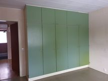 Lattia: Keittiössä: muovi. Pesutiloissa: muovi. Olohuoneessa: muovi. Makuuhuoneessa: muovi. Seinät: Keittiössä: maalattu. Pesutiloissa: muovi. Olohuoneessa: tapetti. Makuuhuoneessa: tapetti.