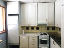 Liesi: sähköliesi. Kylmäsäilytys: jenkkikaappi. Varustus: liesituuletin.