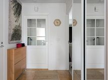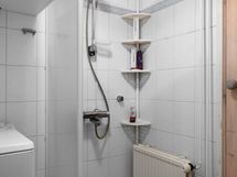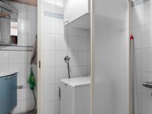 - Kylpyhuone: pyykinpesukonevaraus, suihku, suihkuseinä, kaappi, Sauna: sähkökiuas, lauteet, WC: wc-istuin, peilikaapit, allaskaapisto