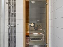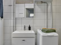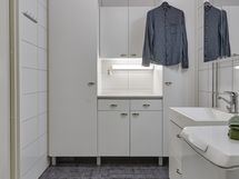 - Varustus: suihkuseinä, pesukoneliitäntä, lattialämmitys, suihku, peilikaappi, kylpyhuonekaapisto. Varustus: lattialämmitys, peilikaappi, bidee-suihku.