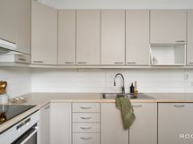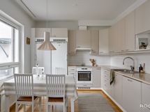 - Liesi: erillisuuni, liesitaso. Työtasot: laminaatti. Kylmäsäilytys: jääkaappi, pakastin. Varustus: astianpesukone, liesituuletin / suodatin. Lattiapinnat: Parketti.