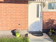2012 Huoneiston D sisäänkäynnin lipan korjaus, puisten ulko-osien maalausta